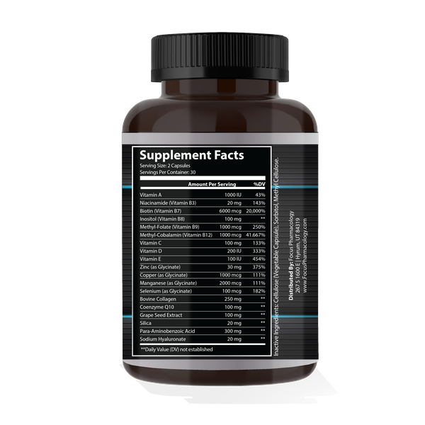 Vitamin B6, Folic Acid & Biotin. Promotes hair growth & thickness, strengthens nails, aids with skin clarity