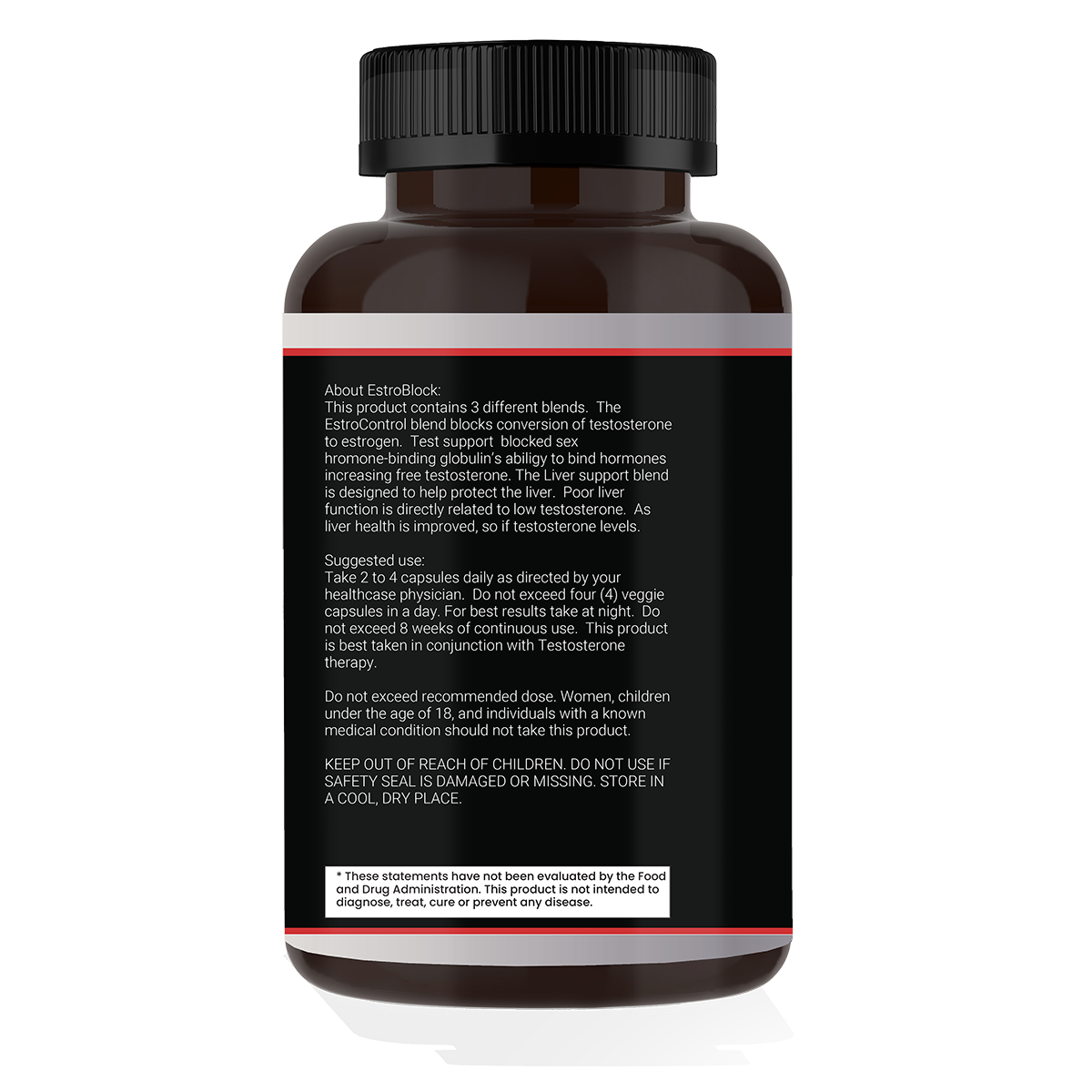 Focus Pharmacology Estroblock contains antioxidants that enhance liver support and help restart the body's natural function. Poor liver function is directly related to low testosterone. As liver health is improved, so are testosterone levels. Estroblock is used to block conversion to estrogen.