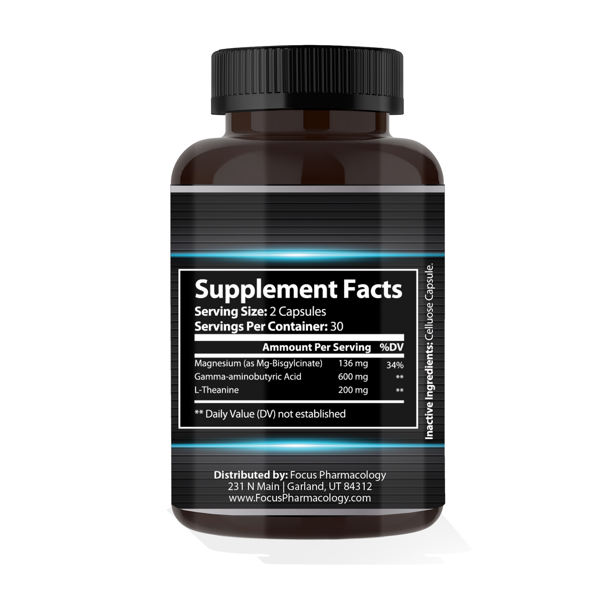 It works by increasing circulating GABA in the brain. GABA is naturally released by the body to help shut the mind down. It does so by increasing the electrical potential needed for neurons to fire. By increasing potential, it is harder for neurons to fire. The whole body effect this causes is a calmer disposition and it is easier for ADHD individuals to stay focused. It is also very important for sleep to have elevated GABA levels. Melatonin may help you to fall asleep, but it is GABA that helps you to stay asleep. We further combined a healthy dose of Magnesium Glycinate to further relax the mind and body.